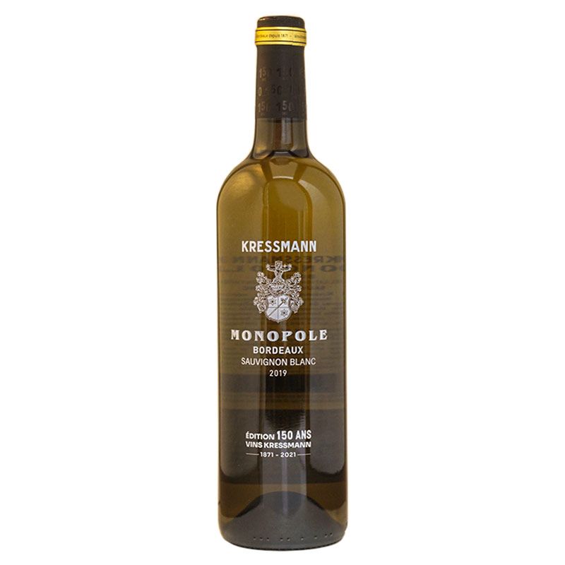 Kressmann Monopole Sauvignon Blanc 2019 es un vino blanco procedente de la D.O Bordeaux , Francia está elaborado con la variedad Sauvignon Blanc. Ideal para acompañar con Carnes blancas, pescados como bacalao en salsa de mantequilla y platos con mariscos. Se recomienda servir entre 9 y 12 ºC.